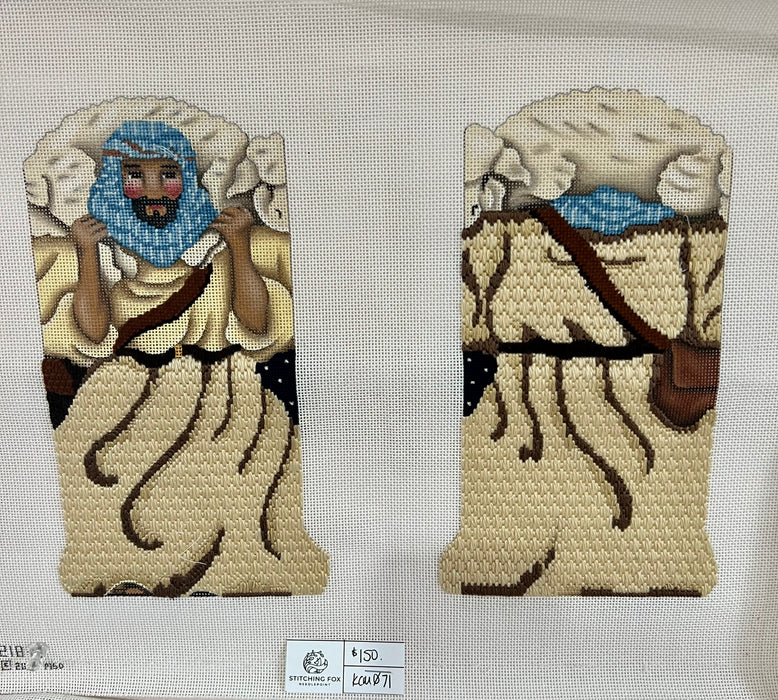 This 2-sided Shepherd canvas is pre-worked on his tunic and head scarf.