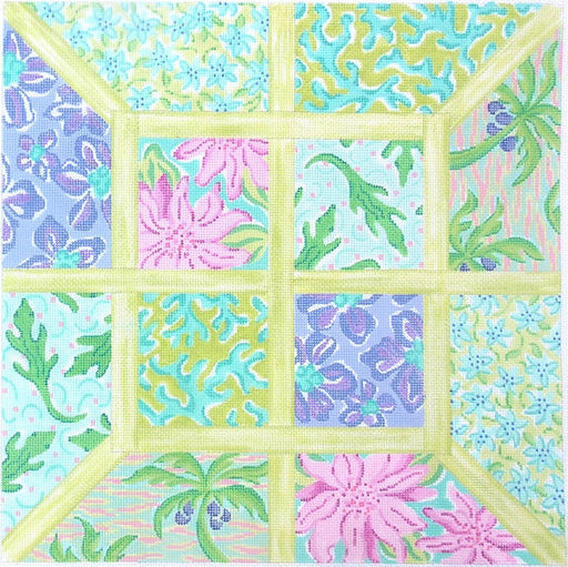 Lg. Sq.– Lilly-inspired Lattice Patchwork – pinks & greens