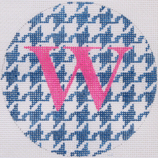 3" Round – Navy & White Houndstooth w/ Red Letter