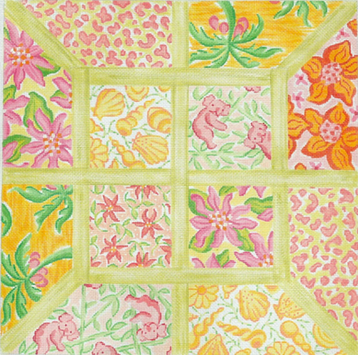 Long Rect.– Lilly-inspired Lattice Patchwork – yellows, pinks, corals & greens