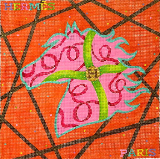 Designer Scarf Series – Hermès-Inspired Confetti Horse – brights on orange