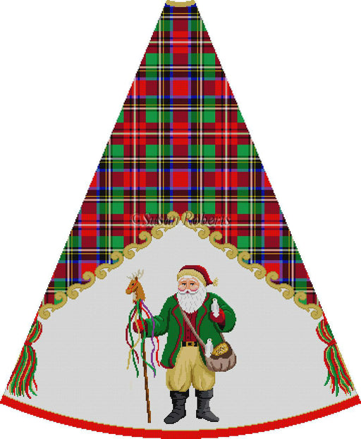 Loden Jacket Santa Feeding Birds - Tartan - Tree Skirt