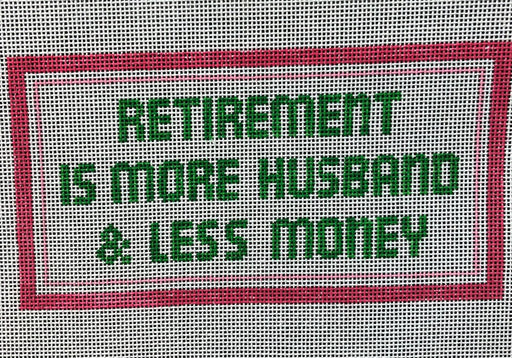 Jessica Tongel"RETIREMENT IS MORE HUSBAND & LESS MONEY" Hand painted on 14 mesh this cheeky pillow insert was my grandmothers favorite saying.