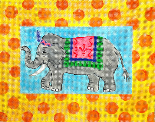 Kelly Rightsell – Circus Elephant w/ Orange Spotted Yellow Border