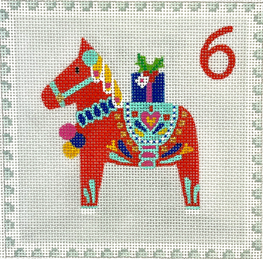Klara Hawkins – Advent Around the World Stamp #6 – Sweden – Dala Horse w/ Gift