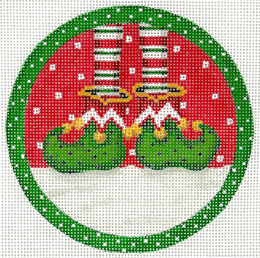 Sally Eckman Roberts – Elf’s Feet w/ Green Dotted Border – on red w/ sparkles