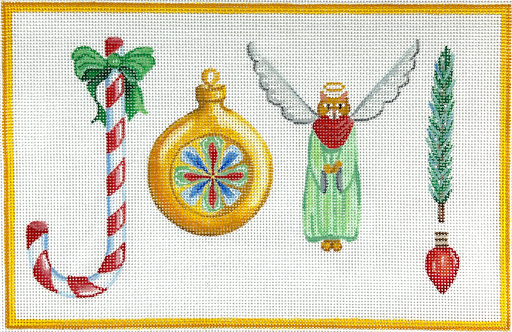 Wendy Russell – JOY! w/ candy cane, bauble ornament, black lab angel, pine sprig & lightbulb