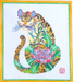 Gabby Malpas – Decorative Tiger w/ Pink Peony, Leaves & Yellow & Green Border