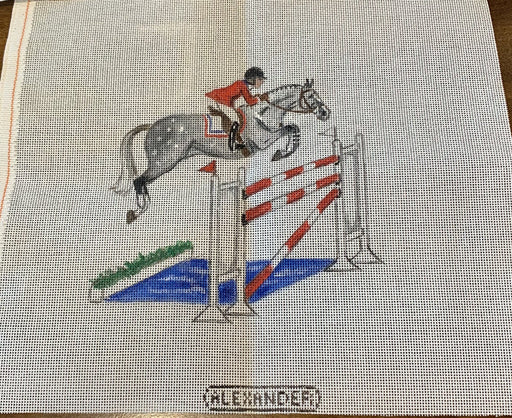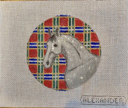 Beautiful horse themed hand-painted needlepoint canvas ornament. Features a gray horse jumping by artist Bonnie Alexander. Perfect gift or project ...