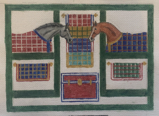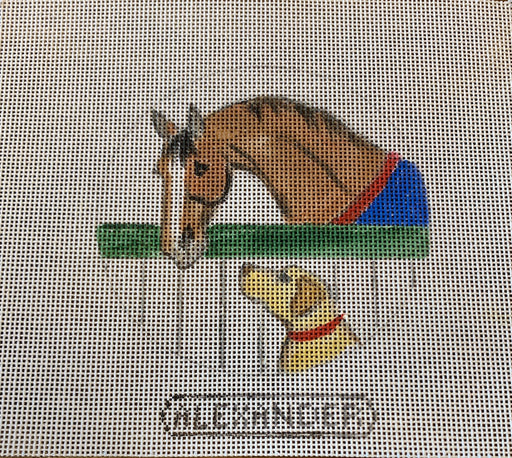 Barn gossip is the best gossip! If only us equestrians knew what they were saying. Hand-painted canvas on 13 mesh. 13m; 11" x 8" BA-124-Barn Gossip