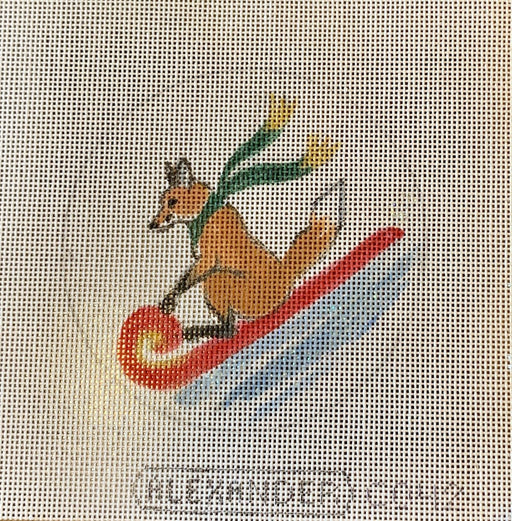 What fun this sweet fox is having on a snow day! This sled-riding fox is a hand-painted original by Bonnie Alexander. Perfect for your Christmas tr...