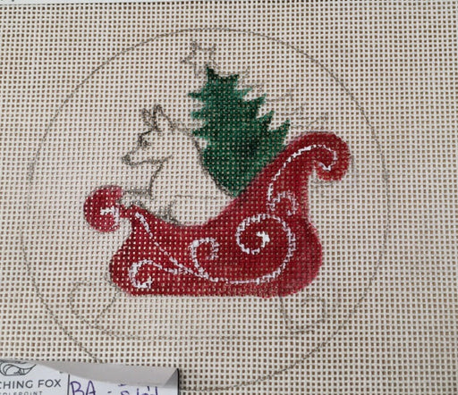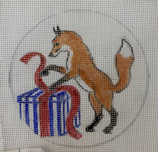 Round hand-painted needlepoint ornament canvas by Bonnie Alexander features a beautiful fox wearing a wreath. Perfect Christmas project.  4" round ...
