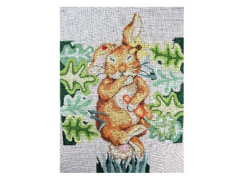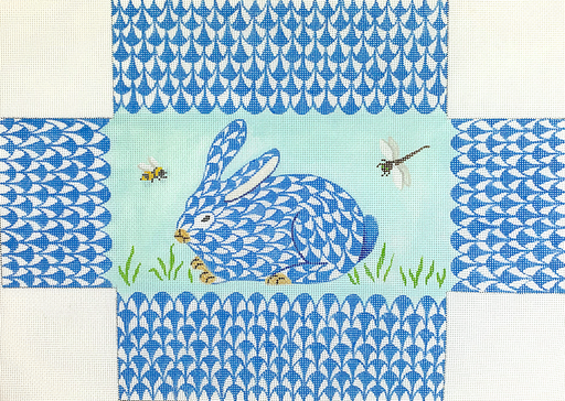 Brick – Fishnet Blue Bunny in the Grass with Bee & Dragonfly