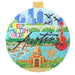 Kirk & Bradley Travel Round Ornaments are a customer favorite! Designs feature the personality and landmarks of various cities and states, and are the perfect showcase for decorative threads and stitches!
