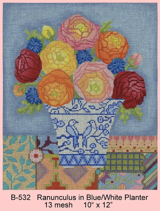 Stitching FoxNeedlework fabric; no design painted. Design diagram is enclosed. 14 mesh; 20" x 30" canvas