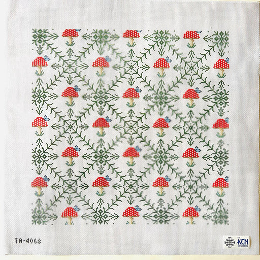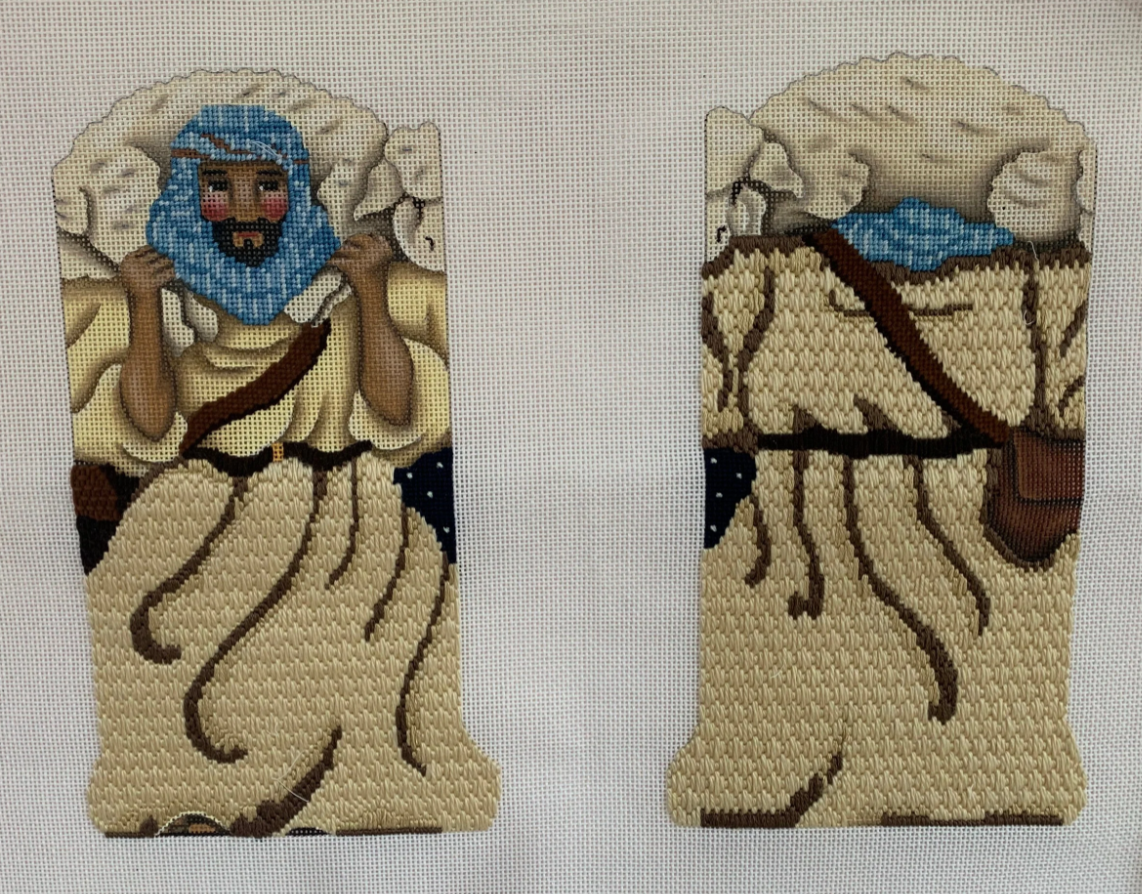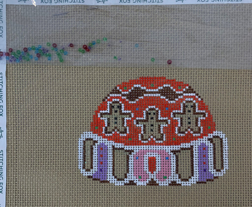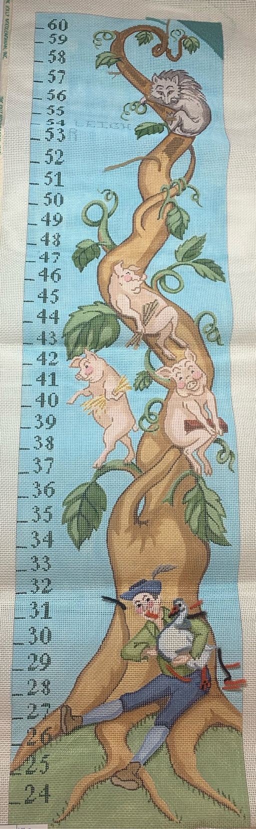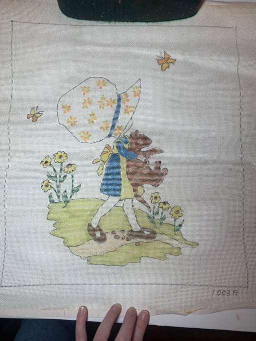 This Mary Engelbreit vest canvas is partially stitched and measures at 11.75” x 23.5“ on 18 mesh.