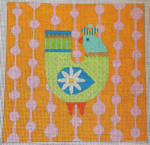 Mod Birds 4" Rnd - Org. Bird on Purple