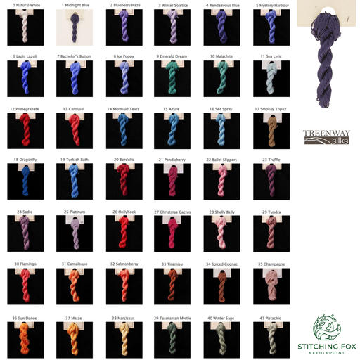 We offer the finest selection of the most unique needlepoint threads including Au Ver A Soie, Burmilana, Dinky Dyes, Silk and Ivory, Rainbow Gallery, Vineyard Merino and Vineyard Silk, Planet Earth, and the Caron Collection. We offer a free thread concierge service with every purchase.  When your canvas is ready to ship, we will reach out via text and ask if you'd like to see the coordinating threads.