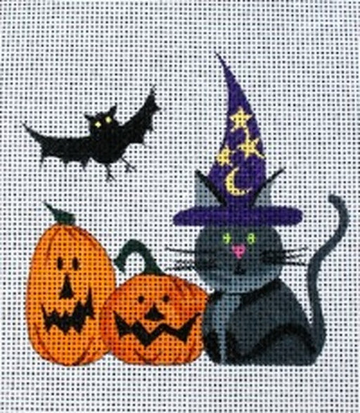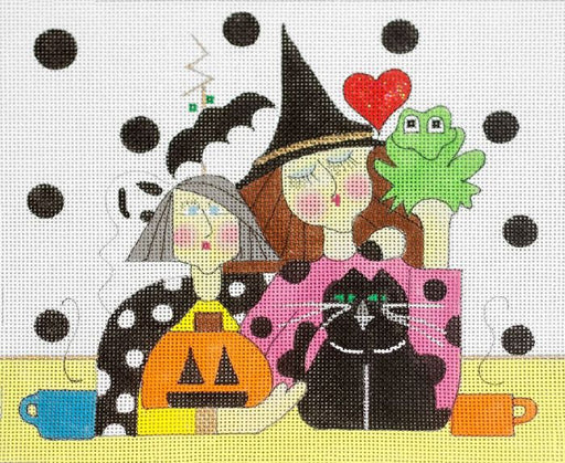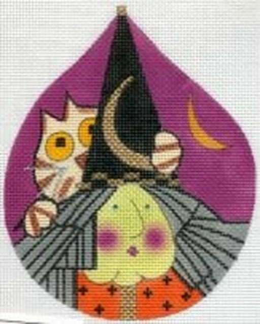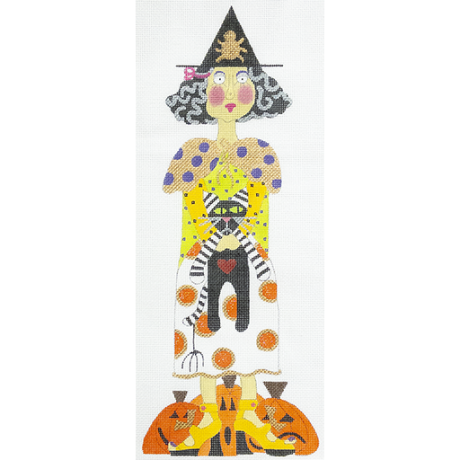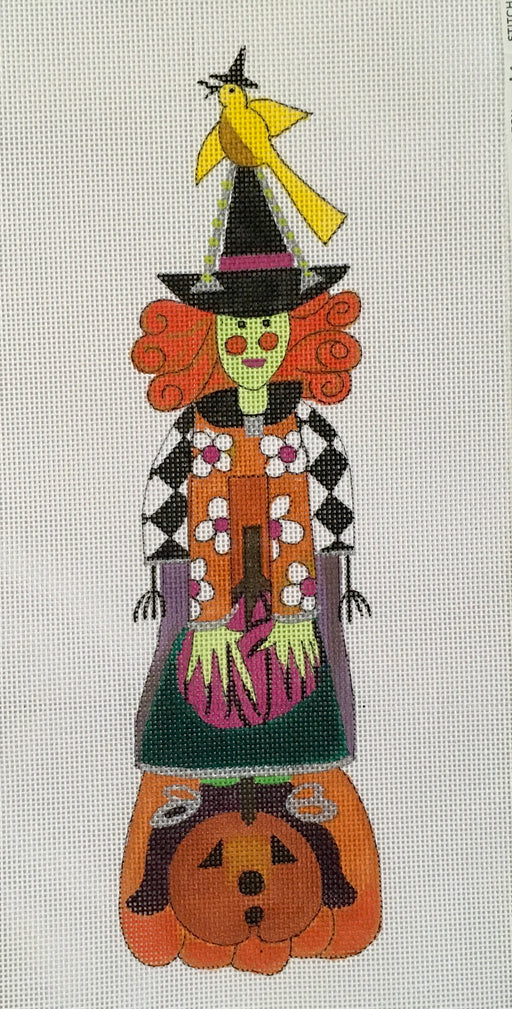 Whimsical witch with pumpkins and bird. 18m; 2.75" x 10.5”