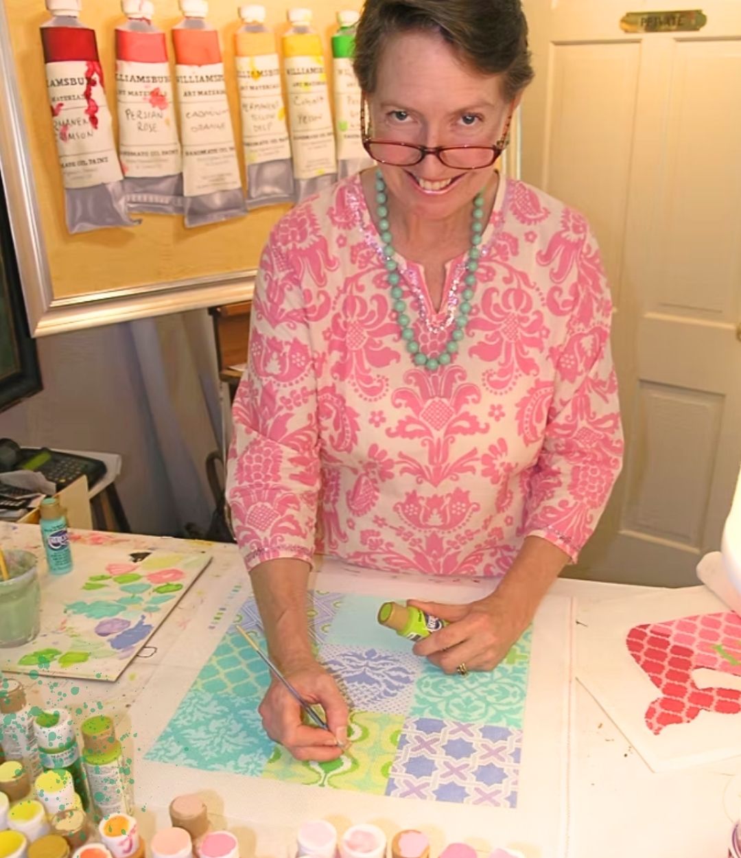 Cuff/Bookmark – Lilly-inspired Palm Trees & Coconuts – pinks & lime on jade