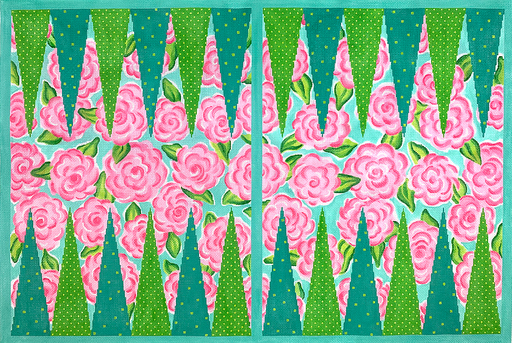 Backgammon Board Canvas – Lilly-inspired Roses – pinks, greens & turquoise (18m)