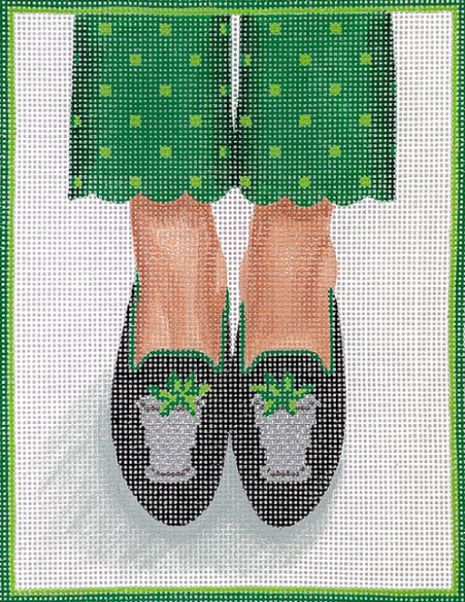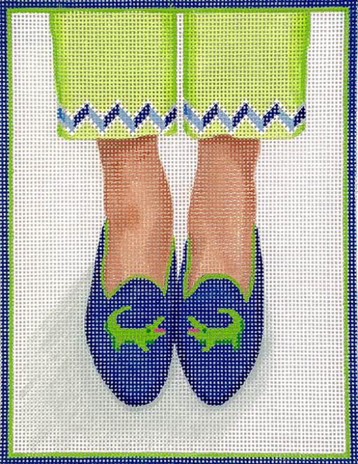 Here’s Looking At Shoe – Needlepoint Gator Loafers – greens on navy