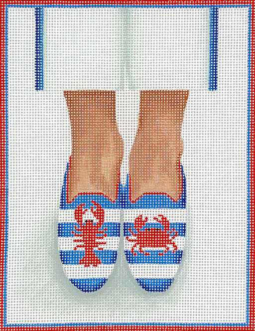 Here’s Looking At Shoe – Needlepoint Lobster/Crab Loafers – red, white & blue