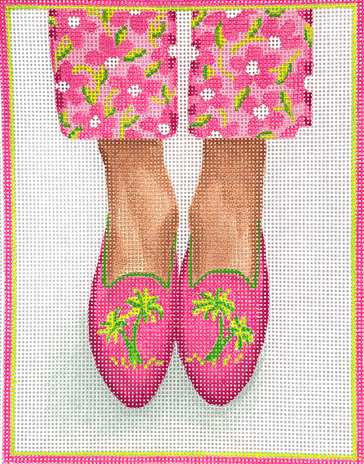 Here’s Looking At Shoe – Needlepoint Palm Tree Loafers – bright pinks & greens