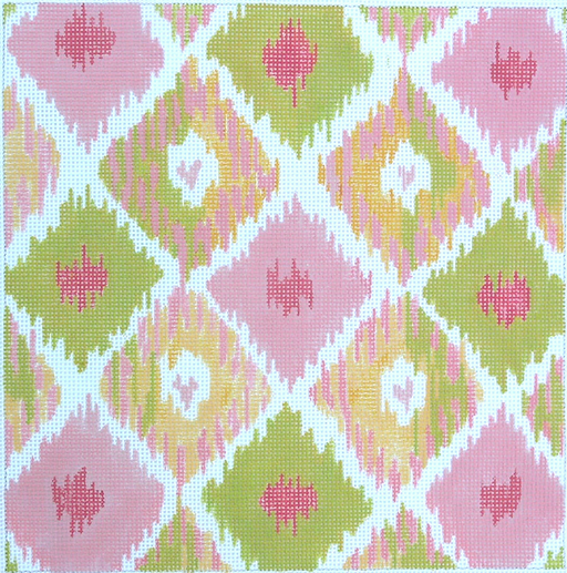 Ikat Diamonds w/ Four Hearts – pinks & greens w/ sun yellow