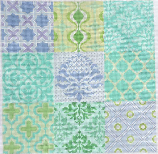 Damask Wallpaper Patchwork – turquoise, greens & periwinkles