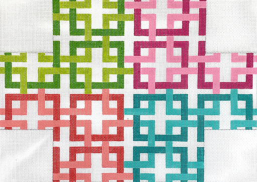Brick – Interlocking Squares – coral, lime, aqua & pink