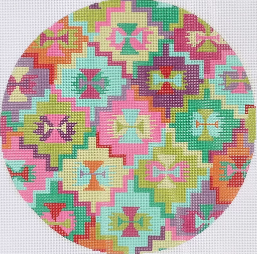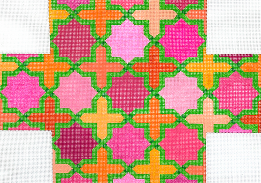 Moroccan Tiles – Crosses & Stars in pinks, oranges w/ greens (stitch guide available)