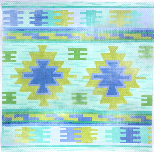 Kate DickersonInterlocking Squares w/ Monogram Space – two-tone aquas , 15 x 13, 13m | PL-13