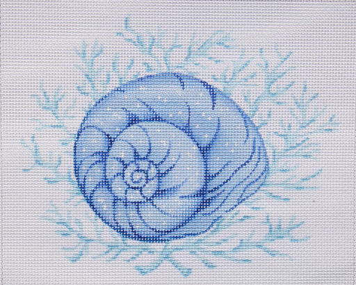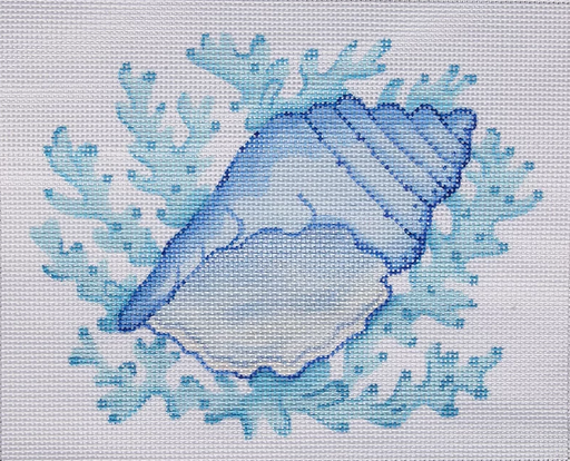 Round Conch w/ Shells & Seaweed Border – aqua bkgd.