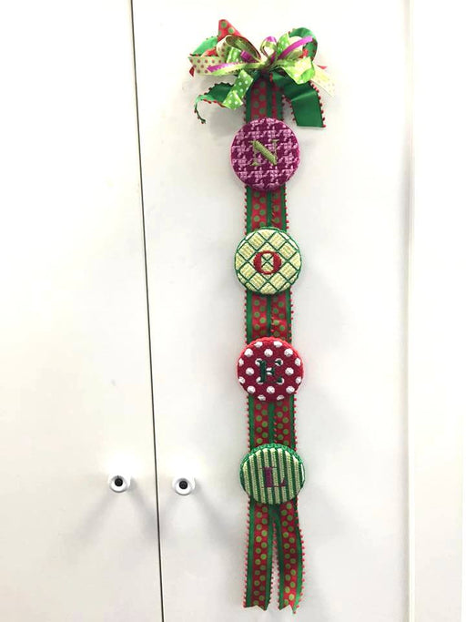 View full details3" Round – Madras Plaid – kelly greens & bright pink w/ white letter