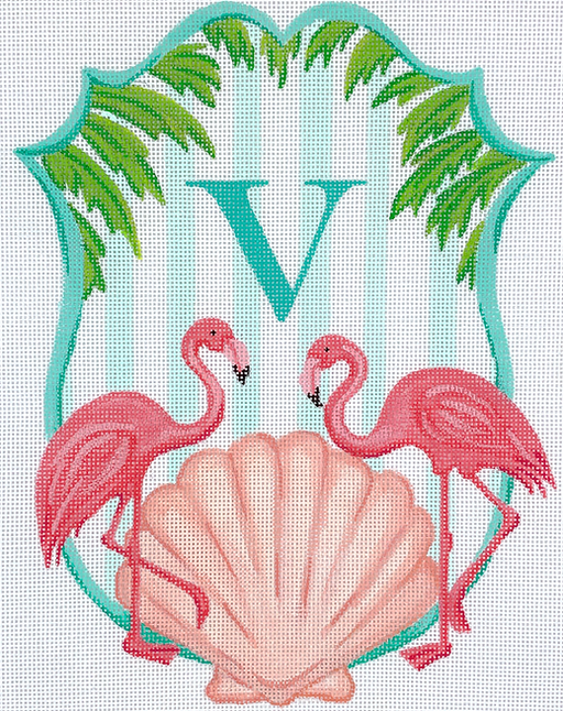 View full detailsMonogram Crest – Flamingos, Scallop & Palm Branches w/ Aqua Stripes