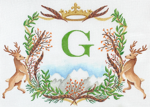 View full detailsMonogram Crest – Stags w/ Pheasant Feathers, Berries, Mountains & Crown