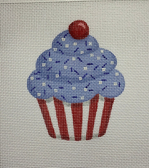 Mini Patriotic Cupcake w/ Sprinkles & Cherry on Top – blue frosting in red & white stripe cup
