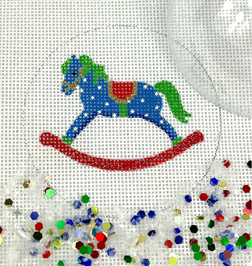 Christmas Ornament w/ Clear Dome Cover & Confetti – Rocking Horse