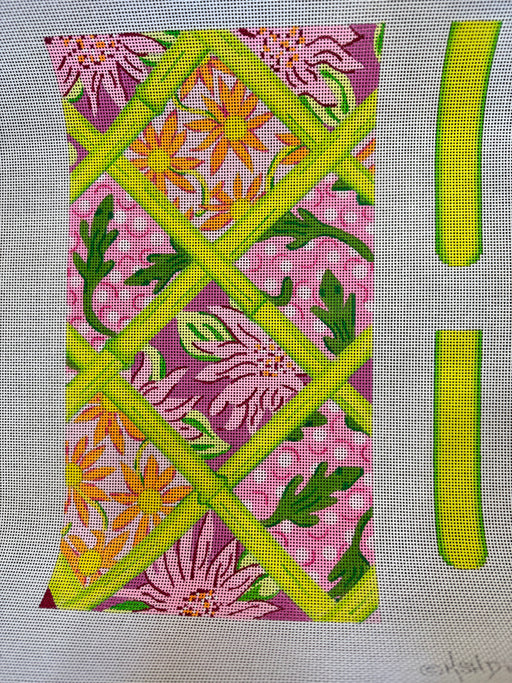 Rect. Chinoiserie Lattice w/ Monogram Space – pink and green