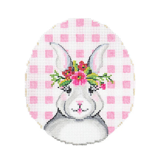 Bunny with Flower Crown on Pink Gingham