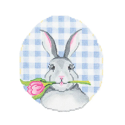 Bunny with Tulip on Blue Gingham