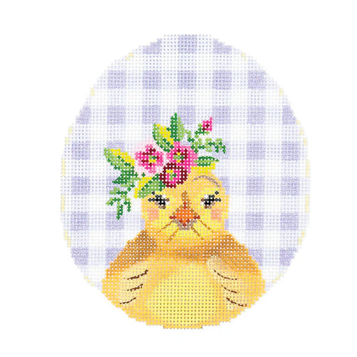 Chick with Flower Crown on Lilac Gingham