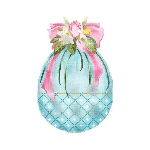 Turquoise Egg with Tulips and Pink Ribbon