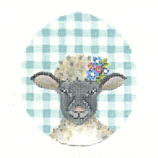 Black Lamb with Flower Crown on Aqua Gingham
