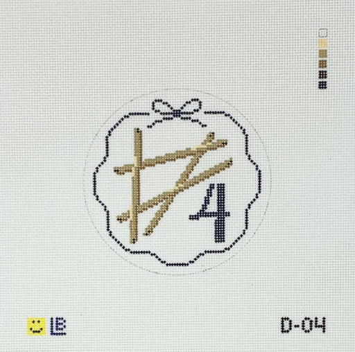 4" round · 18m · LB-D-00 Part of the "12 Days of Needlepoint" Collection -- twelve ways to commemorate the hobby we love. This 13th canvas can be ...