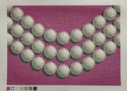 Clutch your pearls! This canvas stitch guide depicts a triple-strand pearl necklace on a solid bright fuchsia background. There is plenty of space around the pearls to add a monogram, wedding date, or other detail.