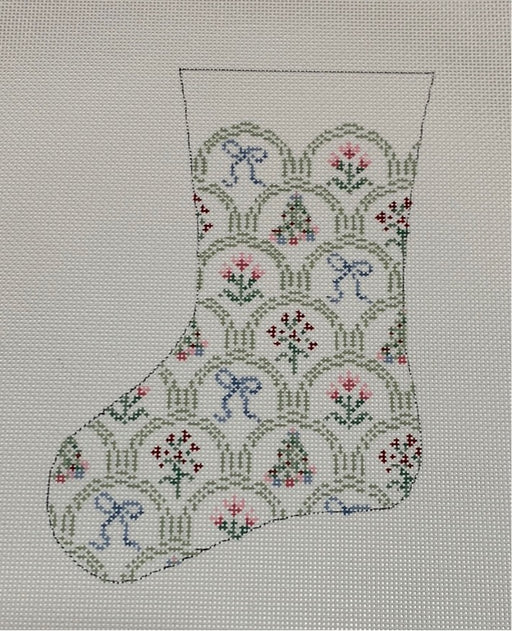 Stocking decorated with woodland animals on sage green background. 13m; 18.25" x 14" PS-RS20E