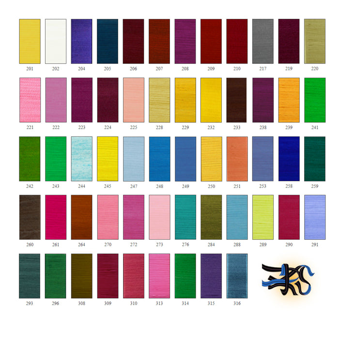 Did you know? We carry the entire line of River Silks' 4mm and 7mm ribbon, including both solid colors and overdyed/variegated styles. Selections are sorted by ribbon width (4mm or 7mm), as well as color number, and can also be found by using our Thread & Fiber Finder!