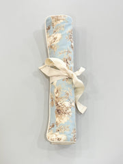 The decorative fabric is lined with a contrasting fabric. Fabric tie closure. The Canvas Roll is designed to organize and transport needlepoint projects: canvases (not on stretcher bars), threads, and tools. This accessory is travel-friendly, lightweight and easy to slip into your tote, beach bag, or carry-on. Listing is for the canvas roll only.
